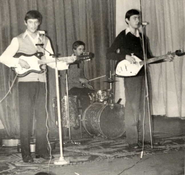 Atunci am zis: ”Măi, asta-i chestia! Asta e!” Și am făcut și noi o trupă. Eram cinci, patru în clasa a VII-a și unul în clasa a VIII-a. Inițial, eu am fost la pian, Luci Goia a fost la bas, Mircea Avram la tobe, Romeo Avram- băiatul unui ofițer venit în Buziaș de la Oradea, care făcuse chitară la Palatul Pionierilor cu profesor! Era cel mai bun la chitară dintre noi. Știa și solo-uri la chitară , și Mihai Getvan – care era cu un an mai mare ca noi, la chitară armonie. Așa am avut primul spectacol. Am cântat alături de Timizii. De fapt, a fost în deschidere la Timizii. Era un spectacol intitulat ”Talente, talente!”, care se organiza în Buziaș. Era cu de toate. Bineînțeles, muzica ușoară era ultimul punct, era cel mai așteptat moment. Așa am debutat, în formula asta.
