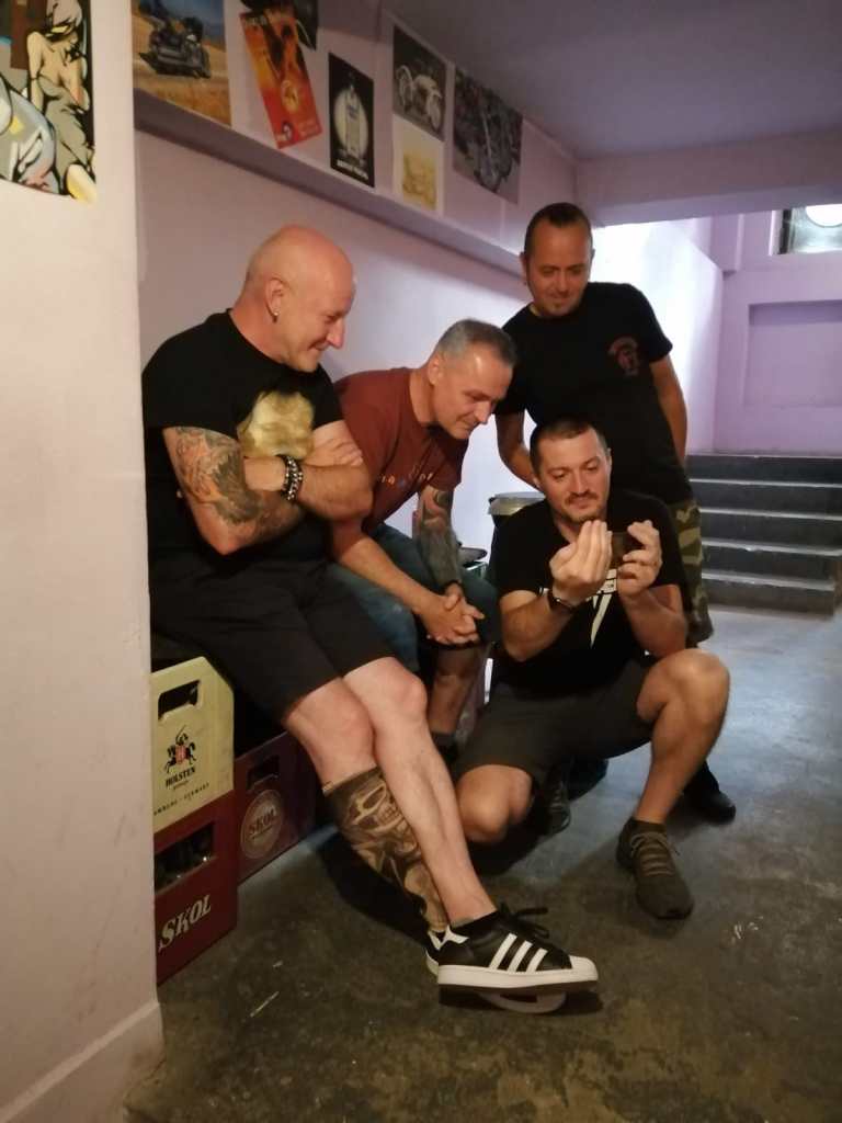 Aceasta a fost seara mea la repetiția lor, a celor de la Anarhia. O seară care m-a încărcat emoțional, într-un mod plăcut. Am stat, totuși, de vorbă cu membrii celei mai prolifice formații rock lugojene, Anarhia, formație care a scos două albume, cu două Case de discuri diferite, formație care are cei mai înfocați fani (chiar dacă au pe la 50 de ani, cam toți), formație care, chiar și după douăzeci de ani de la despărțire, este invitată să cânte în festivaluri. Eu zic, după ce i-am ascultat, că șanse ar mai fi să îi vedem împreună, ca Anarhia. Piesele lor sună foarte actual, și muzical și ca mesaj. Un cuvânt frumos și celor de la Road Patrol Lugoj, care, după ce au reușit să îi convingă să se reunească în 2013, la Festivalul organizat de ei, „Rock pe 2 roți”. Anul acesta, le-au oferit spațiul pentru repetiții și șansa unui concert dedicat fanilor (parcă și aveau de ales, când doi dintre membrii Anarhia, care vor urca acum pe scenă, fac parte din Road Patrol Lugoj -Fane și Miță, și majoritatea membrilor clubului sunt fani Anarhia 😎).