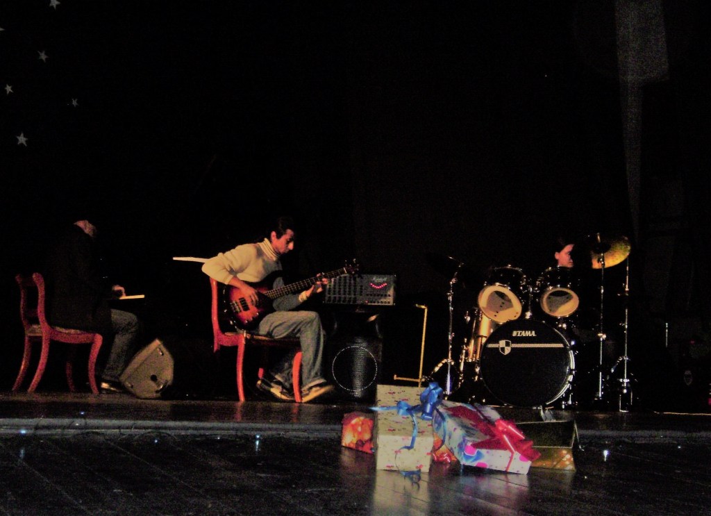 Serbarea se desfășura la Teatru, așa că efortul nu a fost prea mare pentru mine. M-am dus și i-am ascultat. A fost un „wow”, pentru mine. Chiar dacă doar chitara bas era amplificată, sunau bine. Cântau piese din jazz-ul clasic și Luci, la pian, cânta chiar foarte, foarte bine! Le-am promis că, odată cu reluarea Clubului de Jazz de la Teatru anul următor, voi vorbi și cu domnul Katona pentru a le organiza un concert, înaintea prezentării unui concert, pe format video.