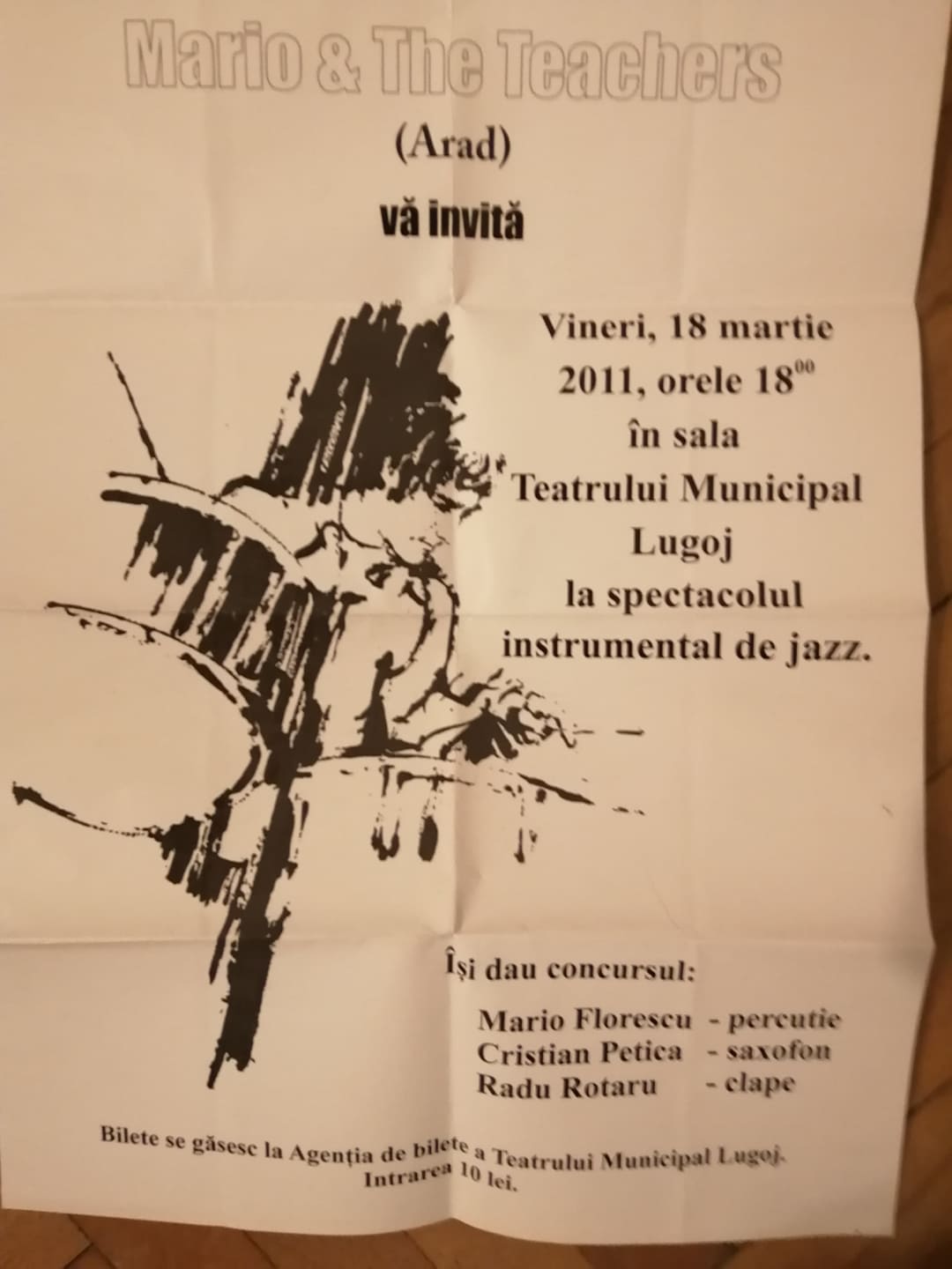 Cu o sonorizare improvizată (nu am reușit să amplificam complet toba Danielei, din lipsă de microfoane…) concertul a fost o reușită. Surpriză mare, publicul a fost destul de numeros în sală! (Luci era profesor și avea mulți elevi 😉) Așa de puține microfoane am avut, încât eu nu am mai avut niciunul și am fost nevoit să-i prezint „urlând” la public. Și mai era și prima prezentare pe care am făcut-o vreodată a vreunui spectacol😂. A fost bine, dar cu o trupă, nu faci o Gală… Mă bătea gândul, dar, de unde? Nu bani, doar o singură trupă… La câteva zile după acel concert, am fost sunat de Mario Florescu, din Arad, care m-a întrebat dacă poate să cânte și el cu trupa lui, Mario and the Teachers, la Clubul de Jazz al Casei de Cultură a Municipiului. A fost omul în concert cu Ștefan Hrușcă, la Teatru, și a văzut afișul pe care îl făceam în fiecare joi, pentru Club. Inițial, i-am explicat că noi avem un Club de promovare a jazz-ului, cu prezentări video, nu un Club propiu-zis, dar, după ce am intrat în mai multe amănunte, am fost de acord (are Mario un stil de a convinge omul… 😂) să vină să cânte pe scena Teatrului, cu sonorizarea și biletele lui. Tot ce puteam eu să-i ofer era afișul…