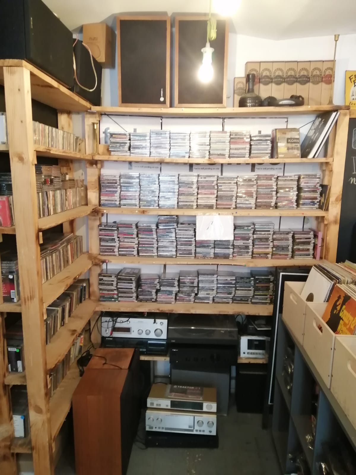Acum mai am doar câteva beri prin frigider, că am renunțat. Am rămas strict ca magazin de muzică. Ideea e că, până la urmă, s-a transformat în magazin de muzică, așa cum mi-am dorit de la început. Cafeaua, ceaiul, restul, sunt doar motive să mai vină lumea să mai povestească. Aici, practic, se vinde muzică. Asta ar fi povestea „Viniloteca”.