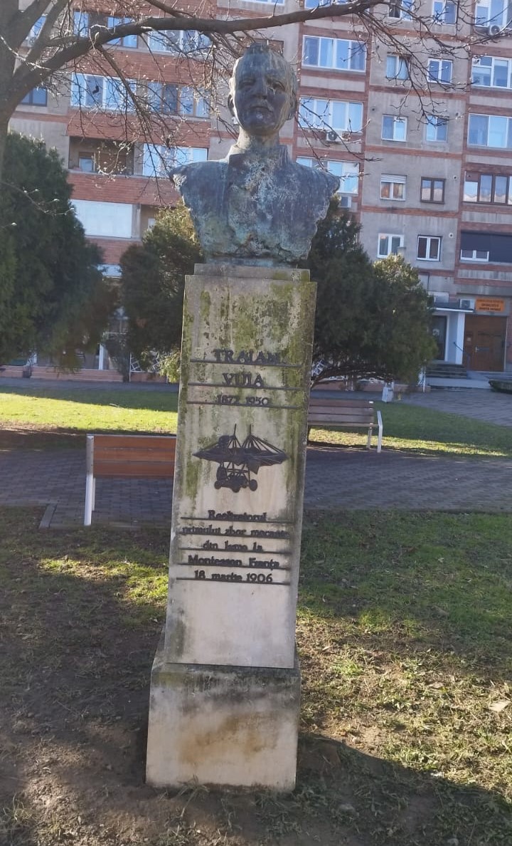 Cine a decis asta? Cine a hotărât această poziționare absurdă a celor două busturi? Niște funcționari foarte grăbiți să termine un proiect pe hârtie, că se apropia ora de plecare? Care ar fi ideea? Mihai Viteazul să privească spre viitor, în timp ce Traian Vuia să contemple trecutul? Nu îmi dau seama… Cert este că s-a obținut un simbol al nearmoniei: două valori ale istoriei românilor, care ar trebui să fie pe aceeași lungime de undă, dar care nu reușesc nici măcar să-și vadă fețele…