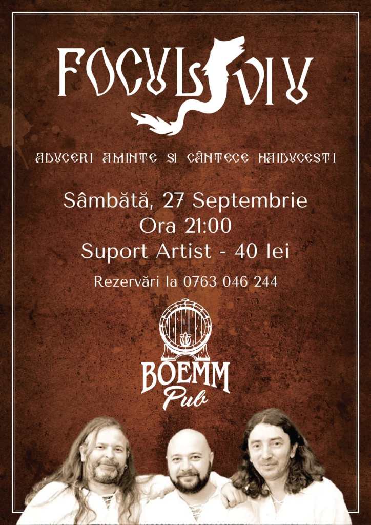 Focul Viu înseamnă o atmosferă intimă, caldă, apropiată de spiritul serilor de cenaclu, dar și un spectacol plin de energie, care cheamă publicul să cânte alături de trupă. Cei care vor fi prezenți sâmbătă la BOEMM Pub vor putea descoperi sau reîntâlni o formație care, de peste două decenii, își păstrează autenticitatea și mesajul viu, transmis prin muzică.