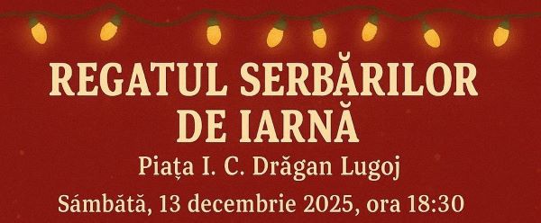 Sâmbătă, 13 decembrie 2025, la ora 20:00, Regatul Serbărilor de Iarnă din Piața I.C. Drăgan va organiza un concert de colinde internaționale susținut de Cvintetul de Alamă „Armonii” din Timișoara, oferind reinterpretări elegante ale melodiilor de Crăciun. Evenimentul face parte din programul cultural organizat de Casa de Cultură „Traian Grozăvescu” și Primăria Lugoj.